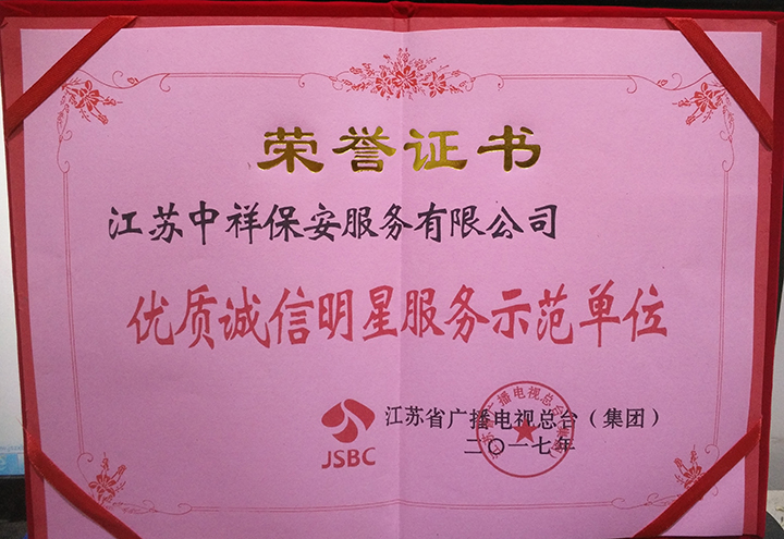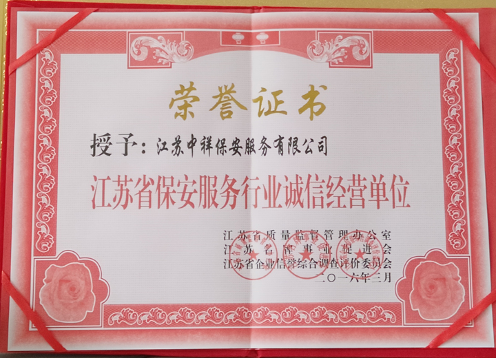 江蘇中祥保安服務(wù)有限公司是經(jīng)江蘇省公安局廳,市公安局批準(zhǔn)的具有合法資質(zhì)的保安服務(wù)公司,屬上海智成旗下子公司,我司從2003年以來(lái)至今已有十幾年的管理經(jīng)驗(yàn),多年來(lái)一直專業(yè)從事企業(yè)安全外包、大型活動(dòng)現(xiàn)場(chǎng)保衛(wèi)、長(zhǎng)短期保鏢、緊急危機(jī)處理、技術(shù)防范等全面安全事務(wù)管理服務(wù),保潔服務(wù),物業(yè)管理服務(wù),取得了驕人的業(yè)績(jī),并受到客戶的高度贊揚(yáng)。
